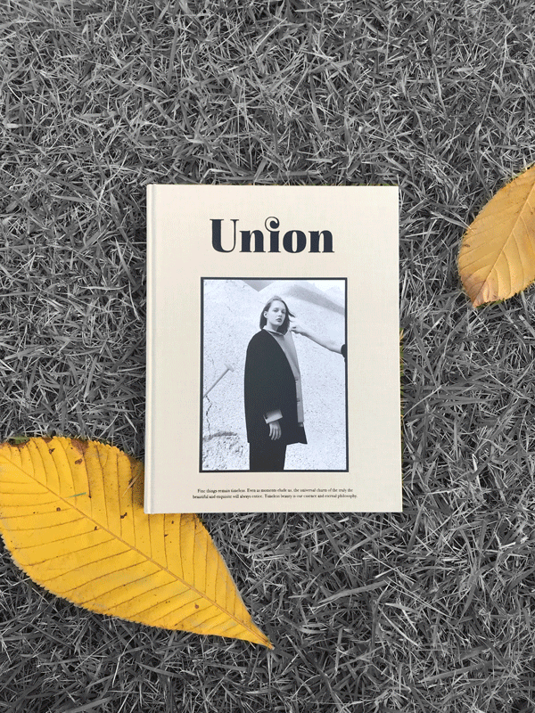 패브릭 하드 커버, 모노톤 화보가 매력적인 일본 패션 매거진 유니온(Union). 1년 두 번 발행하는 계간지로 매년 3월 S/S, 9월 F/W 시즌으로 발행됩니다. 흔한 종이 잡지보다 두터운 화보 책에 가깝습니다.