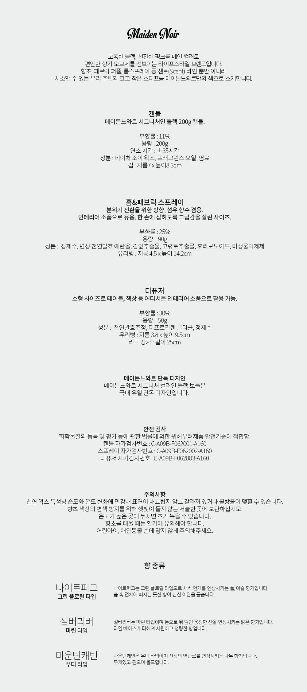 천연 왁스 특성상 습도와 온도 변화에 민감해 표면이 매끄럽지 않고 갈라져 있거나 물방울이 맺힐 수 있습니다. 이는 교환, 환불이 어렵습니다. 수축, 응고로 인하여 왁스 표면이 갈라진 경우는 심지를 연소해 왁스를 1차 녹이고 굳히면 복구됩니다. 색 방지를 위해 햇빛이 들지 않는 서늘한 곳에 보관해주세요. 온도가 높은 곳에 두면 왁스가 녹을 수 있습니다. 심지 연소 시에는 환기에 신경 써주세요. 3시간 이내로 태워주세요. 어린아이, 애완동물 주변에 닿지 않게 주의해주세요.