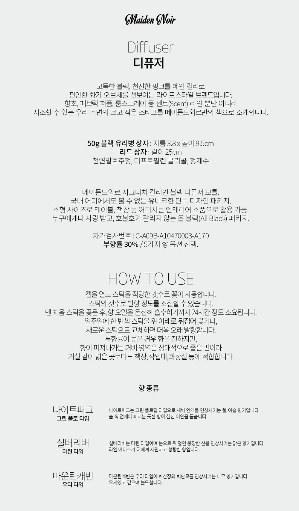 메이든느와르 제품은 로젠택배로 배송됩니다. 7만원 이상 구매 시 배송비 무료입니다. 상품 수령일로부터 4일 이내 반품/환불 가능합니다. 변심 반품의 경우 먼저 구매처 문의 글이나, 070-8098-4165로 전화 주세요. 배송비 3,500원을 제외한 금액이 환불되며 제품 및 포장이 재판매 가능한 상태여야 합니다. 제품 불량인 경우 문제 확인이 가능한 상태로 회수 되어야 확인 후 교환, 환불이 가능합니다. 반품지 : 대전 유성구 봉명로 16 1109동 303호 메이든느와르 070-8098-4165