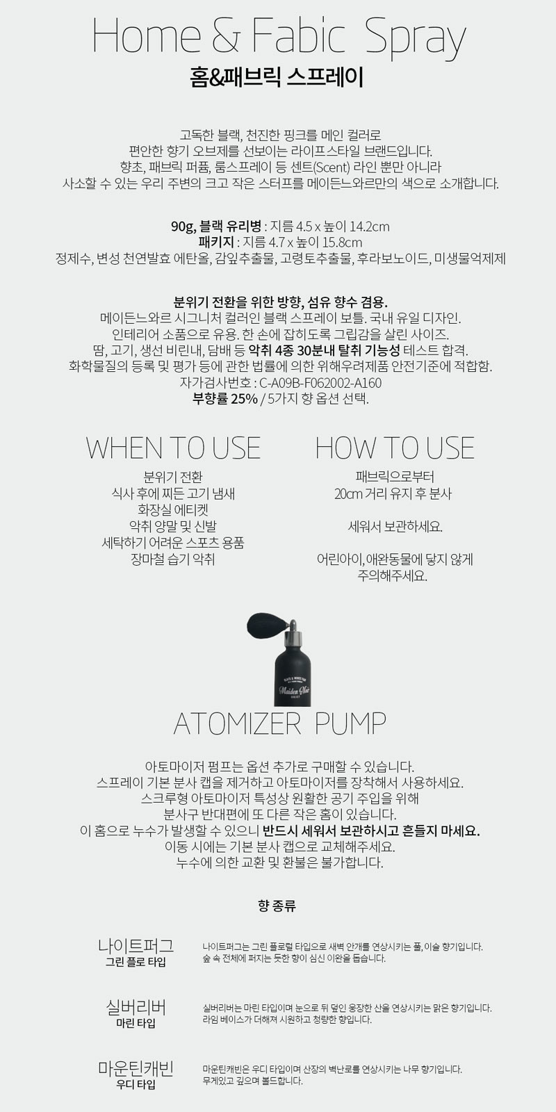 스프레이 잠금 장치를 ON으로 돌려 분사해주세요. 불이 있는 방향으로 직접 분사하지 마세요. 가죽 분사 시 오염될 수 있습니다. 얼굴과 피부에 직접 분사하지 마세요. 섬유 분사 시 오염 방지를 위해 안감에 소량 분사 테스트 후 사용하세요. 섬유와 20cm 이상 거리를 두고 분사해 주세요. 눈, 예민한 피부에 내용물이 닿았을 경우 물로 헹궈주세요. 어린아이, 애완동물 주변에 닿지 않게 주의해주세요.